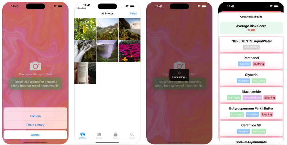 CosCheck does not collect, store, or process any personally identifiable information or sensitive data about you when you use our App.